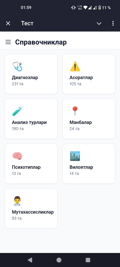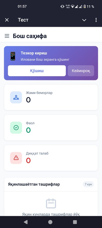 - • Беморлар базаси — барча беморларингизни бир жойда сақлайсиз